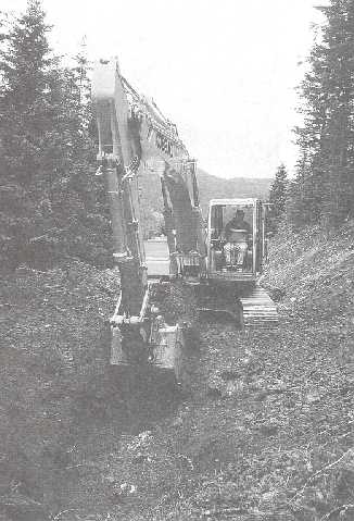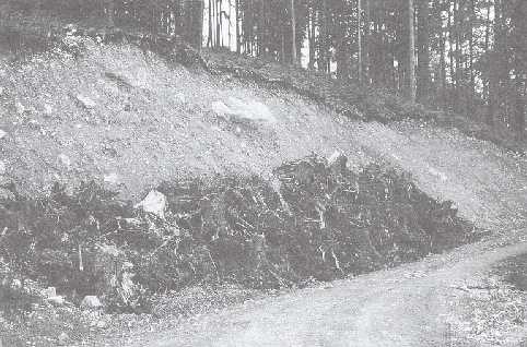 Photo 11. Fill construction is one of the most responsible duties in proper road construction - one can see the separated materials piled hillside
