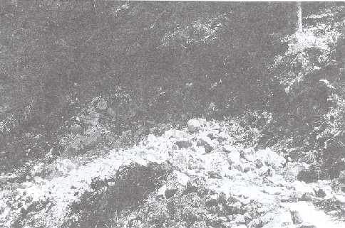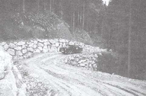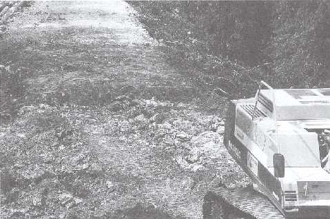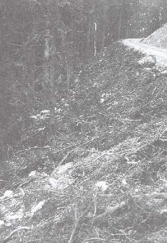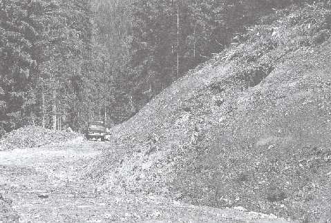 Photo 11. Fill construction is one of the most responsible duties in proper road construction - one can see the separated materials piled hillside