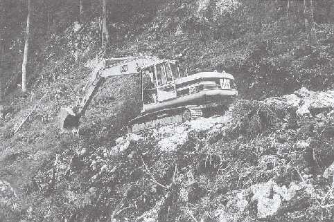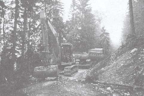 The introduction of hydraulic excavators in forest road construction has been the major step towards environmentally sound road construction practices. In hilly terrain in Austria the use of excavators not only replaced bulldozers in forest road construction but also improved the quality of roads while reducing environmental impacts of these complex engineering structures, whereas in steep terrain their use is the only option to make road construction even feasible.