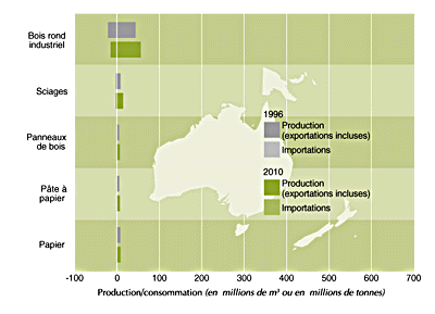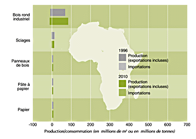 Dans des régions comme l'Afrique et l'Asie, où les approvisionnements provenant des forêts (en particulier les grumes de grande taille) sont sous pression, les consommateurs de bois et de fibres devront de plus en plus se tourner vers d'autres sources pour répondre à la demande (comme ils le font déjà en Asie) s'ils ne veulent pas surexploiter les forêts. Ou, plus vraisemblablement, on assistera au renforcement de la tendance des marchés des produits forestiers à remplacer les bois de sciage et les contre-plaqués par d'autres panneaux à base de bois et par des produits de haute technologie, qui peuvent être fabriqués avec du bois de petites dimensions ou avec des substituts non ligneux.