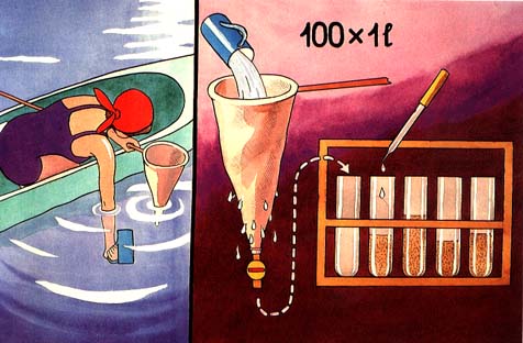 To check this, filter 1001 of pond water through a plankton net with 120-180 micron mesh. Pour the plankton sample into a graduated glass tube. Add 1-2 drops of formalin to the tube to kill the zooplankters. An hour should pass before their sedimentation at the bottom of the tube. The volume of rotifers present should then be read.