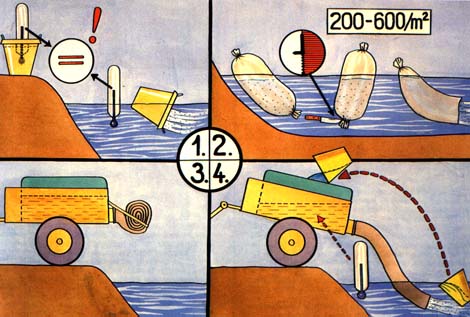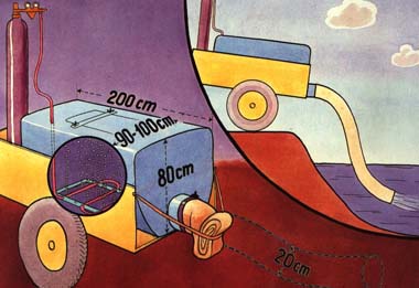 For longer distances such tanks are fitted on to small trucks (3) or larger lorries (4), together with oxygen cylinders.