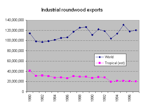 Figure 1: Global forest product exports 1970-1997 (volume)
