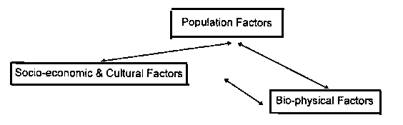 · Population <=> socio-economic and cultural factors: population and gender issues in relation to land tenure or farming systems;