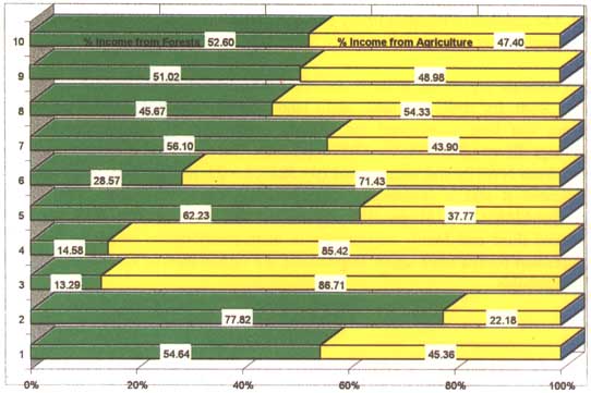 Figure 1. Relative Contributions to Tribal Household Income from Forests and Agriculture