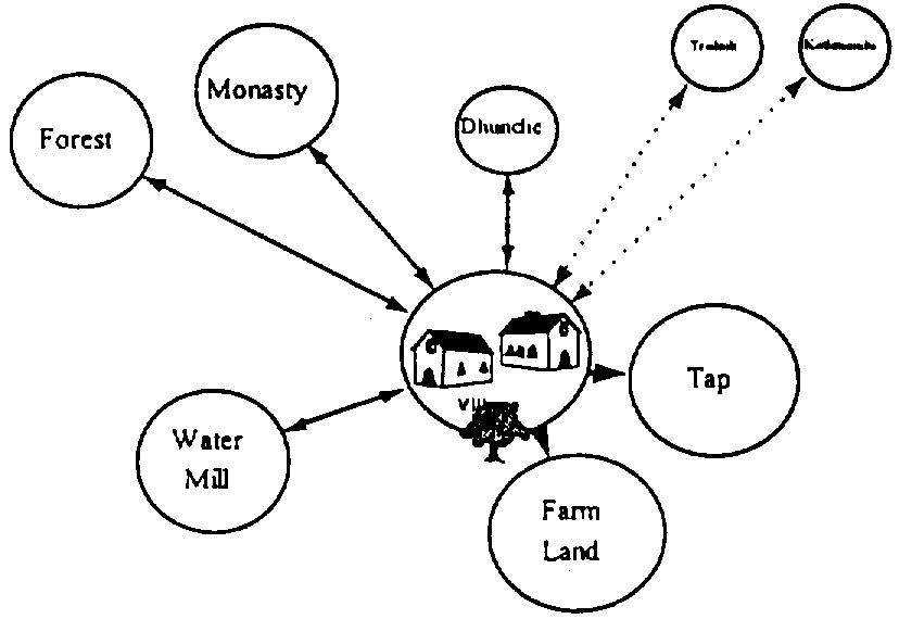 In Nepal the PRAs revealed that women play crucial roles in household decision-making over the use of land. This information was critical to planning for extension, natural resource management, crops, livestock and forestry departments. The men's and women's mobility maps developed during the PRAs (reproduced on the next page) showed that women did not travel to the Agricultural Sub-Service Centre located outside the village (where agricultural training normally took place), and did not attend the Village Development Committee meetings, go to school or even travel to the health clinic. Discussions of these maps revealed the reasons that women had rarely, if ever, had the opportunity to participate in extension training courses. Women's priority rankings, however, showed that extension and other forms of skills training was their highest priority. This, of course, was vital information for extension programme planners. It convinced them that extension training for women must be carried out in the village itself.