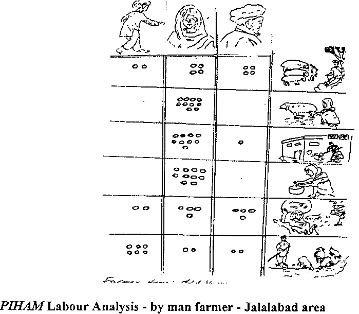 · Undertaking PRA exercises with Afghan women farmers is far more time-consuming given their restricted mobility. While men can meet in groups, it is often necessary for female project staff to meet women in their house. In some areas, this means that only a few women can be met compared to the number of men. If projects are serious about working with women farmers and using female staff they must plan for extra costs - both in terms of time resources Patience is also required with female staff in this difficult situation.