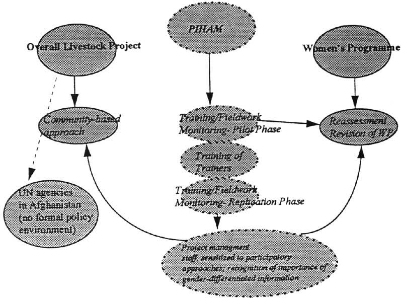 Before the introduction of PIHAM, both the Women's Programme and the overall livestock project implemented an "acceptable repertoire" of services focused on improved livestock production throughout Afghanistan. While some veterinarians and agriculturalists attached to the project had limited experience with participatory methodologies, there was no overall consistent participatory approach for working with women and men farmers. To paraphrase the views of senior management and agreed by many of the project staff, "Veterinarians waited in their offices for farmers to come to them". In early PIHAM exercises, initiators themselves noted that veterinarians' attitudes to farmers were ones of superiority. They gave little recognition to either women or men farmers' knowledge of their own animals or their capacity to identify potential causes and suggest appropriate solutions. Nor was there