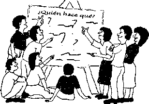 Divida los participantes en grupos y pídales que analicen una actividad que para ellos sea familiar y prepare un plan del personal (Ejercicio 6.4.1). Pídales que consideren cómo las responsabilidades y funciones se relacionan mutuamente y hasta qué punto las varias funciones pueden ser desempeñadas al mismo tiempo. Una vez los grupos hayan completado el ejercicio, vuelva a convocar un plenario y pida a un par de grupos que presenten sus planes. Siga a esto con una discusión, utilizándola como una oportunidad para aclarar dudas sobre los asuntos surgidos.