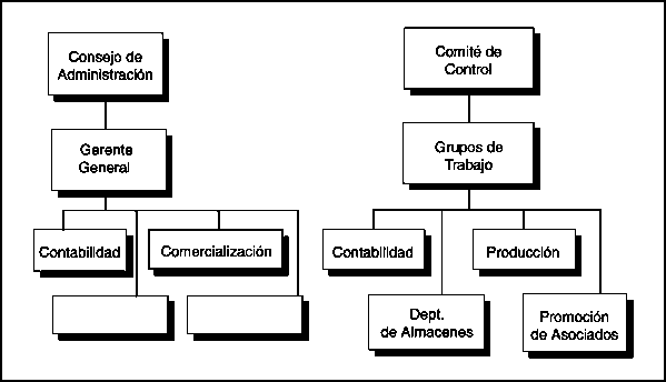 Cuando una organización planea adoptar nuevas estructuras, puede ser de ayuda visualizar relaciones de diferentes grupos funcionales. Una forma de hacer esto es con gráficos circulares.