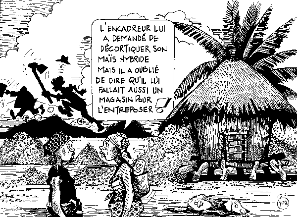 Comme on peut le constater, ces méthodes traditionnelles sont fastidieuses et de faible rendement; elles occasionnent des pertes dues aux grains éjectés et à ceux brisés et écrasés, et produisent des lots de céréales dont le taux d'impuretés (poussière, cailloux, débris de rafles) est souvent élevé.
