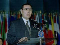 Thank you very much for this opportunity to address this World Food Summit. My name is Willie Littlechild, a Cree Indian, a Member of the Ermineskin Cree Nation in Treaty 6 of the Territory of Canada. It is an honour for me to present this statement on behalf of my indigenous brothers and sisters, the International Organization of Indigenous Resource Development and the Grand Council of Crees. Food as a basic human right, sustainable food security for all, access to safe and nutritious food, cooperative action and partnership cannot be discussed without the inclusion of indigenous peoples. When one looks at the international concerns of the World Food Summit, the Plan of Action and the seven Commitments, every single aspect impacts on indigenous peoples. When one looks at the problems of poverty, lack of access to lands, water and natural resources; population growth; loss of arable and non-arable lands; migrations and others, every single aspect involves indigenous peoples. When the majority of over 300 million indigenous peoples of the world are among the poorest of humankind, we can no longer be excluded. When one looks at the spiritual relationship with our mother earth, it means indigenous peoples. We are "Inuwak", Peoples of the Land. While we appreciate the efforts of some delegations, we note and draw attention to the very weak references to indigenous people in the Rome Declaration and no reference at all in the Plan of Action, especially when it is the United Nations International Decade of Indigenous Peoples. As indigenous peoples with a right to self-determination, we too have concerns with "food for all". We are concerned that trade is expressed as the key to food security and that emphasis on markets does not recognize indigenous food systems. Non-arable lands or foods from the "wilderness" are not protected for those indigenous peoples who have been harvesters since time immemorial. There are pressures on indigenous peoples not to go to their lands for wild foods, where it still exists, by environmentalists and/or developers. The negative impact of tourist development, land conversions and the food monoculture also erode traditional Indian food systems. The access to lands for traditional foods must be protected. Indigenous peoples have a land-based culture. Food from our mother earth is intrinsically related to our cultural and spiritual way of life. Food is an essential part of many of our spiritual ceremonies. Our religious feasts require certain traditional foods like wild berries and meats, herbs and water. These are integral parts of our culture that are currently impacted or interrupted in many ways. Our ancestors in some areas have secured our traditional ways and food systems in Treaties. These international agreements were signed for "so long as the grass grows, the rivers flow and the sun shines". For sharing our lands, we were to maintain our "vocations of hunting, fishing, trapping" and gathering through certain tracts. We were to be able to do these for food at all seasons of the year. In others, we were to be assisted by Treaty "to be engaged in cultivating the soil" as a right to development. There are other principles in international covenants which state that "Peoples" may not be denied "their own means of subsistence". In conclusion, we would humbly and respectfully urge this World Food Summit to consider some fundamental and positive recommendations for follow-up implementation: First, as you commit to food security for all, where state governments have signed Treaties with indigenous peoples, honour and respect those international agreements according to their original spirit and intent; Secondly, as food is a basic human right and you commit to the promotion and protection of all human rights, then actively support the United Nations Declaration on the Rights of Indigenous Peoples, in particular our right to self-determination as peoples. We acknowledge Canada's recent lead in this regard at the United Nations; Thirdly, as you have committed to access to safe and nutritious foods, then ensure indigenous peoples are returned their dispossessed lands and territories; Lastly, as you commit to cooperative action and partnerships, then ensure indigenous peoples have full and equal participation in decision-making, with informed consent on all matters that directly affect us. | ||