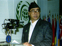 At the outset, I join the distinguished previous speakers in congratulating you, Mr. Chairman, on your well-deserved election to preside over this Summit. I also take this opportunity to express our sincere gratitude to the Government and people of Italy for the warm hospitality accorded to us. The Director-General of FAO also deserves our appreciation for organizing this historic event. The global political and economic scenario has undergone tremendous change since the World Food Conference was held in 1974. Although we are at the threshold of the twenty-first century, when the scientific and technological explosion has enormously enriched our productive potential, poverty, hunger and malnutrition still deny more than 800 million people around the world their right to food. This is patently unacceptable. We live in a world where the relentlessly growing population is outpacing food availability and damaging the environment in many developing countries of Asia, Africa and Latin America. We cannot expect a peaceful and orderly world without ensuring for all, physical and economic access to sufficient safe and nutritious food, the most fundamental of all human needs. It involves not only an increase in food production but also better distribution and sustainable consumption of available food, together with measures to alleviate poverty and stabilize population growth. The Rome Declaration on World Food Security and the World Food Summit Plan of Action cover all these important issues. The Declaration clearly indicates the intention of the world leaders to free the world from hunger with assured access to safe and nutritious food for everyone; to eradicate hunger in all the countries; and to reduce the number of undernourished people to half their present level within two decades. We subscribe to these goals and will work dedicatedly towards their achievement. Food security in Nepal is closely linked to the issue of poverty, resulting in the scattered incidence of hunger and malnutrition. Poverty in Nepal has an important geographical dimension. Due to the lack of enabling infrastructure, the economic efforts of our people are frustrated by high transaction costs which, in turn, inhibit trade between the food-deficit hills and the food-surplus southern plains. Once the economic reform process bears fruit, overall poverty will certainly decline. But overcoming the geographical dimension of poverty will depend on how fast we can develop the transportation infrastructure which, in the mountainous topography of Nepal, is a capital-intensive task which requires high recurrent costs for repair and maintenance. His Majesty's government is working to root out poverty through enhanced growth, sustained agricultural and rural development, employment generation and the extension of social services, provision of rural infrastructure and environmental protection. The basic policy thrust of His Majesty's government assumes that economic development depends to a great extent on the equitable participation of people in the national development process. The Government can influence the growth process by expanding opportunities for the participation of the private sector, civil society and local communities by providing the requisite institutional support. The existence of a dual structure of the economy, the vast rural sector and a small but expanding modern sector, has led us to adopt unique and innovative approaches and programmes for the development of these two sectors with close links between them. The Government follows a liberal pro-market economy in the modern sectors with minimum government interference. It, however, plays a key role in generating a productive environment, in expanding infrastructure and in improving the quality of health and educational services in the rural sector. To ensure people's participation in development, we have initiated measures to empower the local elected bodies through the process of decentralization and facultative use. As agricultural development is intricately linked with population growth and natural resource management, we have formulated long-term agriculture plans which aim to increase the real per capita income from the agriculture sector, given the anticipated decline in population growth, from the current level of 0.5 percent to 3.0 percent in about two decades. The requisite policy reforms for this have been initiated and investment plans drawn up. The basic tenet of this process is an integrated development approach with simultaneous expansion of rural infrastructure that supports agriculture, more efficient delivery of inputs and services like irrigation, fertilizers and extension, and development and dissemination of new technology. Nepal has over the years seen a decline in its per capita food production, and population growth over the past two decades has transformed us from a substantial exporter of cereals into marginal importers. We are, however, ready to face the challenge. His Majesty's Government has recently adopted a long-term agriculture plan with the aim of reversing the trend. The agriculture plan has been closely integrated with our population policy and the programme designed to preserve our natural resources. With increased cooperation from the international community to implement the plan, we expect to produce surplus foodgrains in a few years time. International cooperation is a crucial element for food security. We are, therefore, concerned by the declining global trend of Official Development Assistance to developing countries, accompanied by decreasing food aid and projected increases in world food prices. This exerts severe pressure on the limited resources, particularly of the least developed countries, most of which are also food-deficit countries. I call upon the international community to rise to the challenge in order to prevent a further worsening of the situation. Food security for all will entail substantially high invest