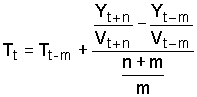 Relative to a particular year, t, the values of m and n correspond to the length of time from the previous and following peak years.