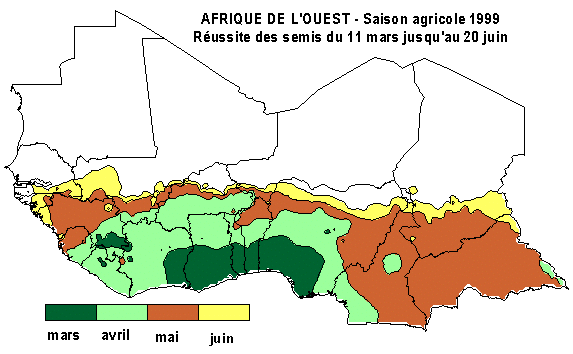 La carte ci-dessous montre les périodes de semis estimées (opportunités)