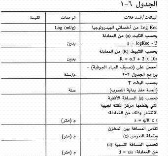 ولعد حساب التركيز في كل نقطة من النقاط المعرضة للتلوث يمكن تدوينه في الجدول 6-3.