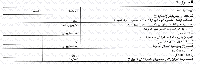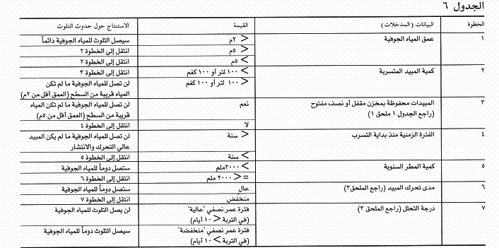 يستخدم الجدول 6 للتنبؤ بانتقال المبيدات إلى المياه الجوفية.