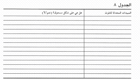 يستخدم الجدول 8 لمعرفة ما إذا كانت المبيدات المحدثة للتلوث يمكن أن تنتشر بواسطة الرياح.