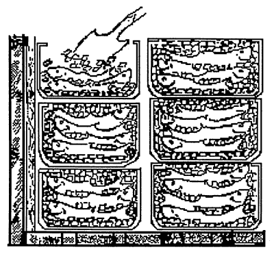 The cleaned fish should then be packed in ice ready for transportation to market. A good way to pack fish in ice is to use the "soldier" method, in which they are packed in freshwater ice in boxes or the insulated hold of your vessel, with the belly downwards or upwards (Figure 65). Saltwater ice is not recommended as its melting point can be as low as