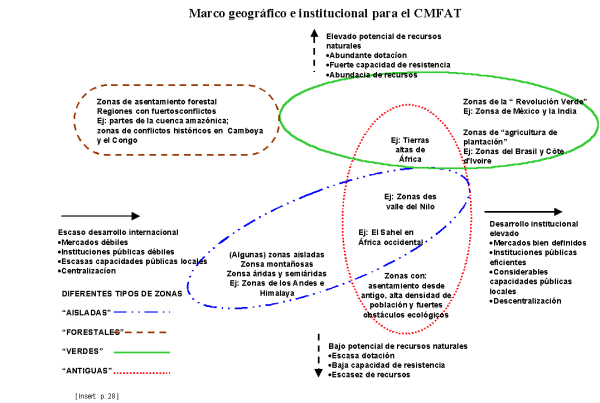 En el ámbito mundial, estos temas son de importancia transcendental para los acuerdos internacionales. Las dimensiones sociales han constituido el núcleo mismo de las deliberaciones de la Cumbre Mundial sobre la Alimentación y de una serie de conferencias relativas al desarrollo social, a la población, a la mujer y a la lucha contra la pobreza. Las dimensiones ambientales del concepto de CMFAT están estrechamente relacionadas con el Convenio sobre la Diversidad Biológica, la Convención de lucha contra la desertificación, la Convención Marco sobre el Cambio Climático y la Convención sobre las zonas húmedas de importancia internacional (Convención de Ramsar). El vínculo evidente entre el concepto y estas convenciones ofrece la oportunidad de construir criterios comunes -o, al menos, basados en la mutua información y articulación. Además, existe la posibilidad de construir mecanismos para supervisar los recursos de tierras actuales y evaluar los efectos de la agricultura con el fin de mejorar la utilización de los recursos nacionales e internacionales y asegurar la sostenibilidad mundial. El carácter inmediato de los actuales procesos de toma de decisiones en el plano internacional y sus impactos confirman la necesidad de abordar las nuevas cuestiones con rapidez y flexibilidad.