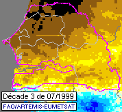 Images satellite (durée des nuages à sommets froids) pour les 3 dernières décades.