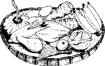 A lexception des produits dorigine animale, la plupart des ingrédients utilisés pour préparer le plat daccompagnement, la soupe dAfrique de lOuest ou tout autre assaisonnement qui va avec le plat principal proviennent du jardin potager. Quand les aliments dorigine animale (viande ou poisson) ne sont pas disponibles, on peut améliorer la qualité du régime alimentaire en mettant à chaque repas différents produits végétaux (par exemple, haricots, lentilles ou arachides avec des légumes à feuilles vertes).