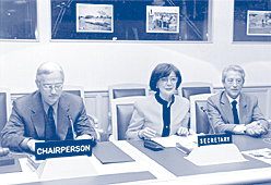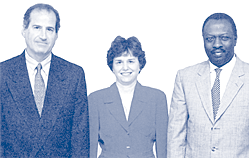 (From left) Fawzi H. Al-Sultan, IFAD President, Catherine A. Bertini, WFP Executive Director, Jacques Diouf, FAO Director-General |