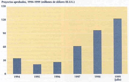 1994-1995 a 650 millones para 1998-1999. Sin embargo, durante el mismo período se verificaron dos fenómenos: