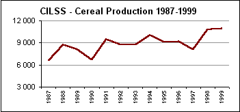 EVOLUTION OF CEREAL PRODUCTION IN CILSS COUNTRIES: 1987-1998 (in thousand tonnes)