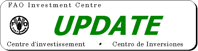 UPDATE, published three times a year, is the newsletter of FAO's Investment Centre. Queries on subjects covered may be addressed to: The Editor, UPDATE, Investment Centre Division, Food and Agriculture Organization of the United Nations (FAO), Viale delle Terme di Caracalla, 00100 Rome, Italy; tel: +39 06-5705-3568; fax: +39 06-5705-4657; e-mail: [email protected].