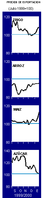 La FAO estima ahora la producción mundial de cereales de 1999 en 1 872 millones de toneladas (incluido el arroz elaborado), lo que representa un volumen superior a la media y sólo ligeramente inferior al del año pasado, pero inferior a la utilización mundial prevista para 1999/2000, por lo cual tendrán que utilizarse las existencias mundiales de cereales por primera vez en 4 años. Las perspectivas iniciales para las cosechas de cereales del 2000 son variadas. En el hemisferio norte, la superficie plantada con trigo de invierno descendió en los Estados Unidos, pero en el Canadá podría aumentar la superficie sembrada con trigo de primavera. En Europa, aumentó la superficie de trigo de invierno en la CE y en algu-nos países de Europa oriental. En el hemisferio sur, las perspectivas para las cose-chas de cereales secundarios del 2000 son favorables en el Africa austral y América del Sur. En la zona ecuatorial y en el hemisferio sur comenzará dentro de poco la reco-lección de la cosecha de arroz del 2000, pero la superficie plantada ha disminuido y la producción descenderá. En muchos países del mundo persisten las emergencias alimentarias debido a los frecuentes riesgos naturales y, cada vez más, a las catástrofes provocadas por el hombre (véase la pág. 4). El pronóstico más reciente de la FAO relativo al comercio mundial de cereales en 1999/2000 es de 222 millones de toneladas, 1 millón más de lo que se había previsto anteriormente, y 7 millones más que el año anterior. Según las informaciones más recientes, los envíos mundiales de trigo aumentaron alrededor del 6 por ciento y los de cereales secundarios el 3 por ciento, pero los de arroz disminuyeron el 4 por ciento. Los precios internacionales de exportación de la mayoría de los cereales se for-talecieron en las últimas semanas. Las informaciones más recientes que indicaban un balance de los cereales de los Estados Unidos más ajustado de lo previsto pres-taron un apoyo importante a los mercados de trigo y cereales secundarios en enero, mientras que una actividad de compra imprevista contribuyó a que el índice de la FAO para los precios de exportación del arroz ganara un punto respecto al nivel bajo registrado en diciembre. En 1999, la producción mundial de carne creció un 2 por ciento alentada por los precios bajos de los piensos. También creció el comercio mundial de carne, en un 5 por ciento, como consecuencia principalmente de la recuperación de la demanda asiá-tica y la creciente ejecución de programas de exportación. Es improbable que esta ex-pansión se repita en el 2000 ya que los suministros de carne roja deberían contraerse. Se prevé que los precios de los productos oleaginosos se recuperarán en 1999/2000, en respuesta a la difícil situación de la oferta y la demanda. La producción de semillas oleaginosas debería aumentar sólo marginalmente y es probable que los productos basados en semillas oleaginosas no alcancen para satisfacer la demanda. Con respecto al comercio, se prevé que el aumento de las expediciones de aceites y grasas contrastará con el crecimiento reducido del comercio de tortas y harinas oleaginosas. |