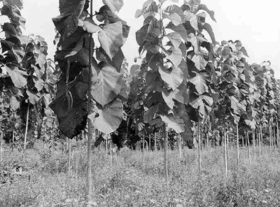 The need for forest plantation was realized as early as the mid-nineteenth century. The first attempt at organized plantation in India was a teak plantation established in 1842 at Nilambur in Kerala, southern India, with the purpose of enriching the forests (Bapat and Phulari, 1995). Chatu Menon, well known as the father of Indian teak plantations, raised more than a million teak plants between 1842 and 1862 (Parameswarappa, 1995). Establishment of plantations in other parts of the country followed. Tree planting activities were expanded with the introduction of the taungya system for teak plantation - a method of establishing a forest crop in temporary association with agricultural crops, first evolved in Myanmar in the 1850s as a mode of replanting teak trees (Negi, 1986). Organized plantations on a large scale were attempted only after 1948, and until 1951 plantation was not a regular and extensive activity (Tewari, 1992).