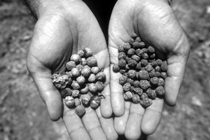 Teak seeds (those on the right are weathered for a high germination rate)