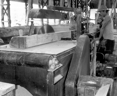 Support mechanisms are required for common problems such as lack of access to recent processing technology and obsolete equipment, like that shown here at a sawmill of the Myanmar Timber Enterprise
