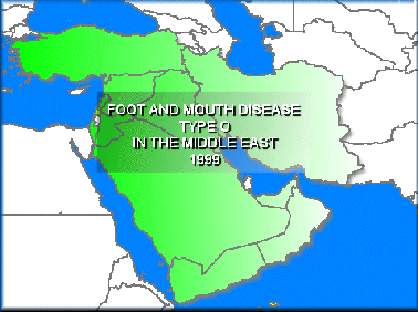 In 1999, FMD type O outbreaks were reported from Bahrain, Iran, Iraq, Israel, Jordan, Kuwait, Oman, Qatar, Saudi Arabia, the Syrian Arab Republic, Turkey, the United Arab Emirates and Yemen.