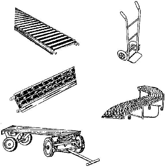 Figure 6.2 (see Figure 6.2. Equipment for moving fresh produce short distances) shows some useful equipment for moving produce short distances which would not only make the job much easier for the workers, it would also speed up operations and reduce physical injury to the produce at the same time.