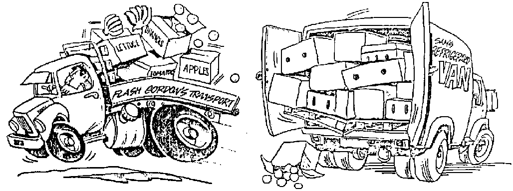 The factors which govern packaging for transportation have already been covered in Section 4. Dropping of packages during loading and unloading is a frequent cause of damage to the produce and to the package, but can be minimised by: