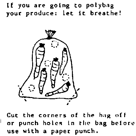 Even if the produce does not suffocate in a polythene bag, it will rapidly sweat and look unsightly and with the real danger of rapid spoiling from bacterial soft rots in the sweaty conditions.