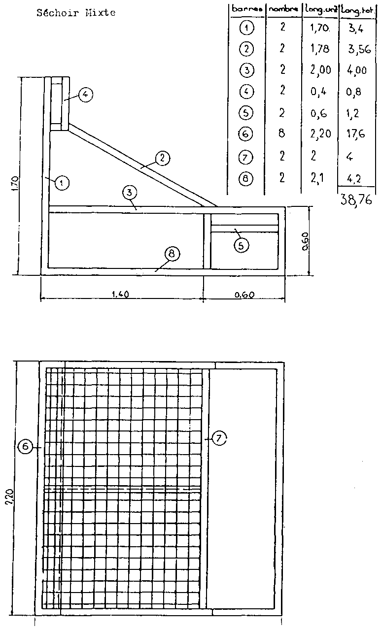 - 8 séchoirs mixtes, 3 séchoirs "CASE" et 3 séchoirs "BAS".
