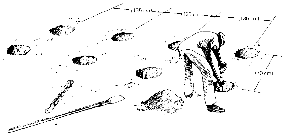 En géneral un bon rendement dans les zones pluvieuses sera de 2000 kg/hectare environ. On peut estimer avec un tel rendement. pour chaque hectare - 8m de longueur. Si le rendement est plus faible, diminuez ces longueurs de moitié.