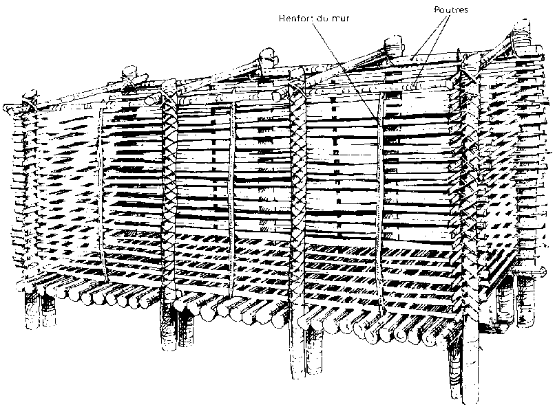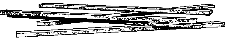 Puis 2 longues . . . et 2 courtes . . . continuant alternativement à poser longues tiges et courtes tiges pour élever les murs jusqu'au niveau de la charpente. Attachez les tiges aux montants verticaux tout les posant.