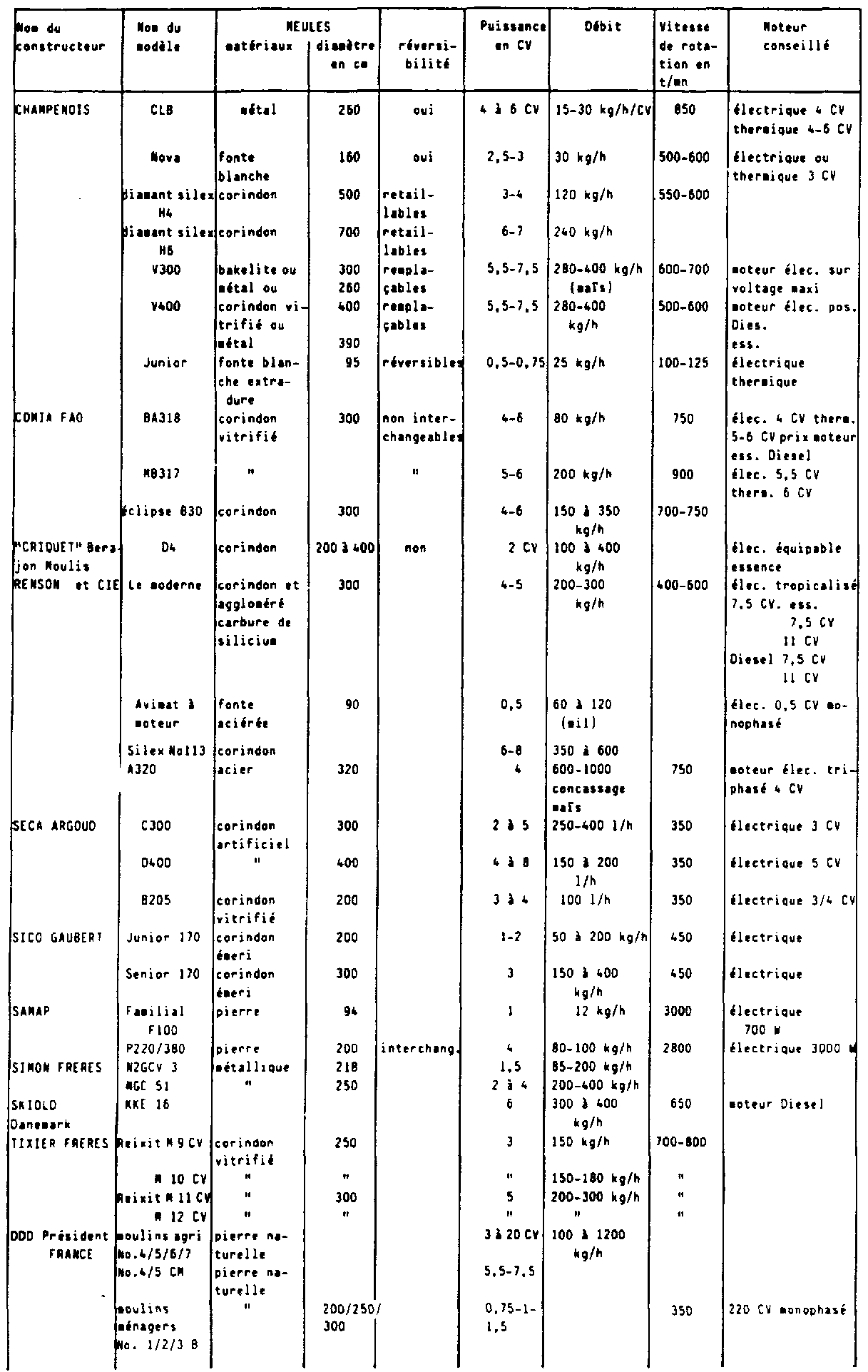 iv) le nombre de rainures des meules: un plus grand nombre de rainures requiert une puissance très grande mais permet aussi un débit plus important;