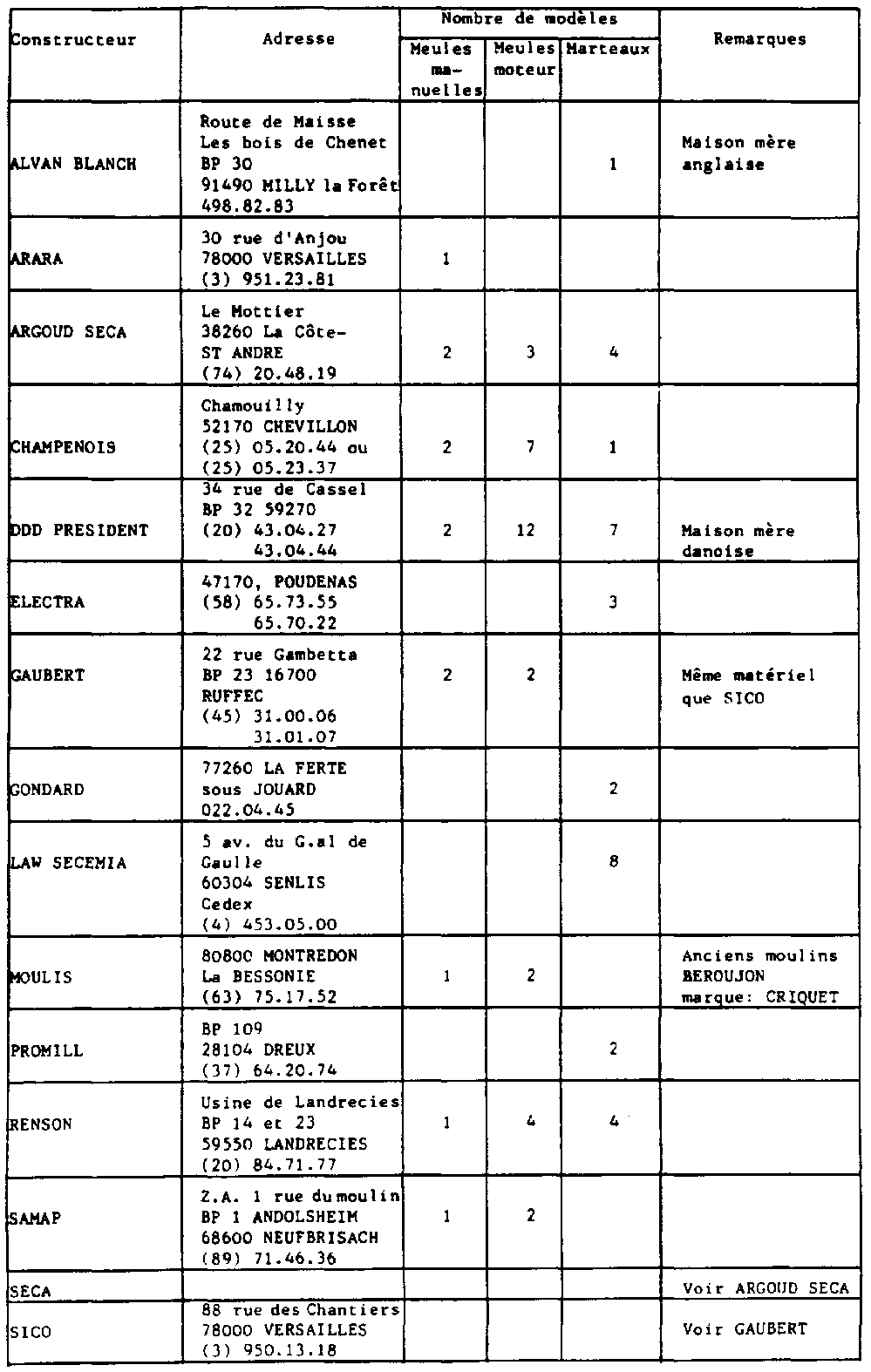 ANNEXE III - Moulins à meules (pour les adresses des constructeurs se reporter à l'ANNEXE III-3)