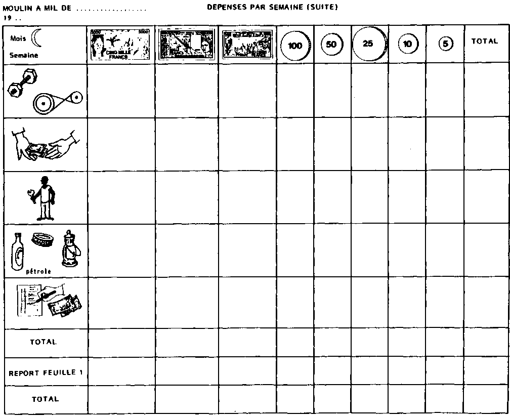 Les premières trois fiches ont été conçues pour être remplies par des analphabètes à qui l'on dispenserait une formation de courte durée, tandis que la quatrième doit être remplie par un villageois, de préférence une femme, lettré(e) ou alphabétisé(e), ou à défaut, par l'encadrement.