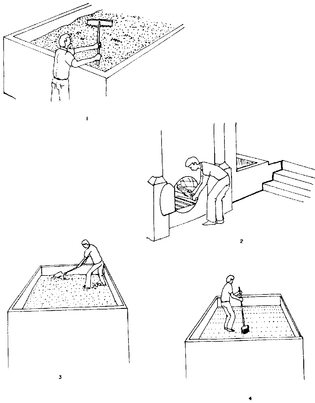 Elección del terreno. El terreno debe ser seco; la capa freática debe estar por lo menos a 1/2 m de profundidad; si al excavar a más de 1 m se encuentra agua, el terreno no sirve. El borde superior del barril debe quedar alineado con la parte exterior de la pared (figura 19).
