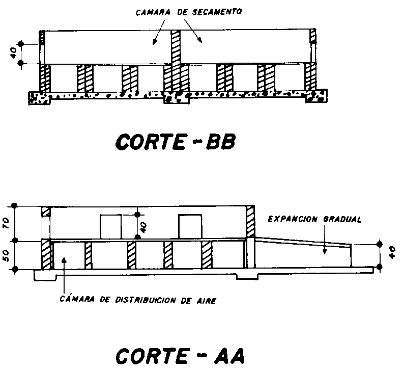 son: i) la cámara de secado, ii) un piso de lámina o chapa
