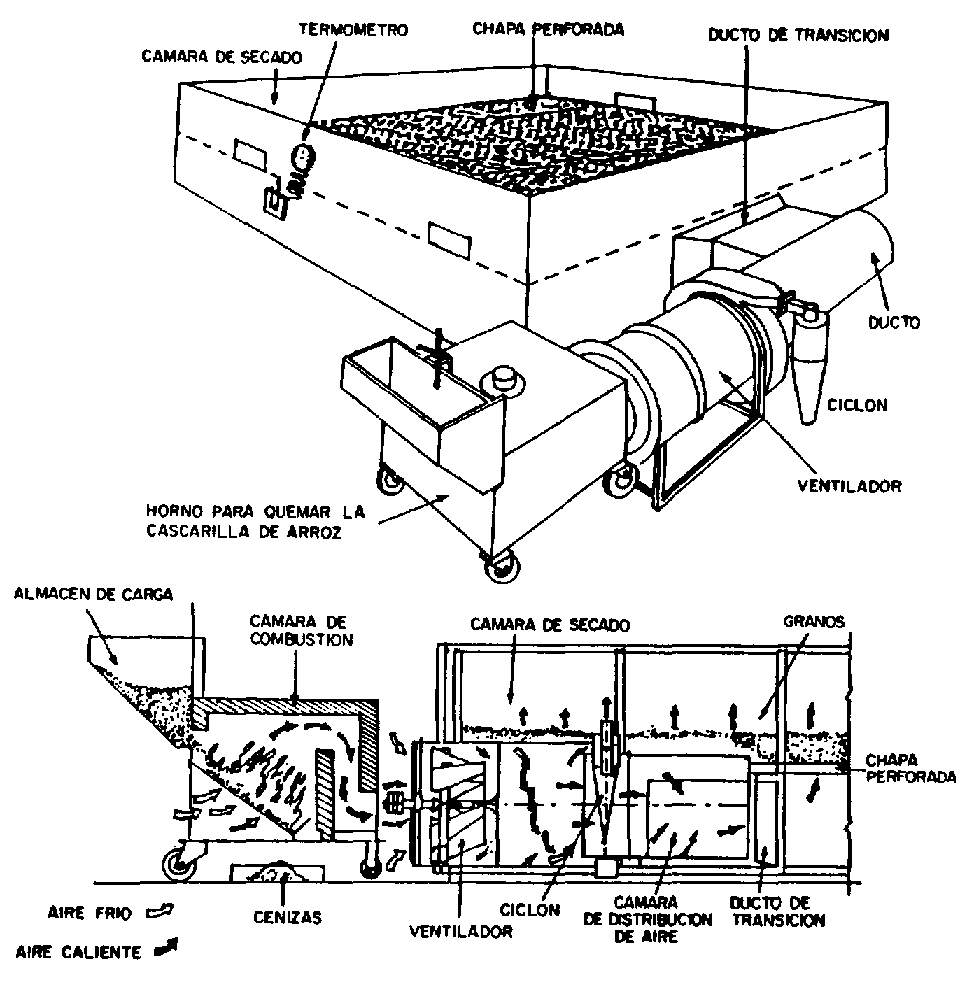 fijo desarrollado y usado en Tailandia para el secado del arroz,