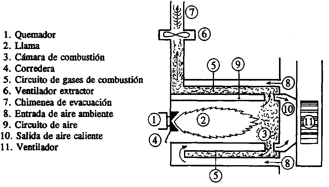 Por las paredes de la cámara de combustión y del generador se producen pérdidas de calor que en parte pueden ser recuperadas haciendo recircular el aire que las rodea, cuandro están instalados en un local cerrado de poco volumen. Cuando los generadores están colocados en el exterior pueden ser aislados en buena proporción con algún aislante bien resistente al calor.