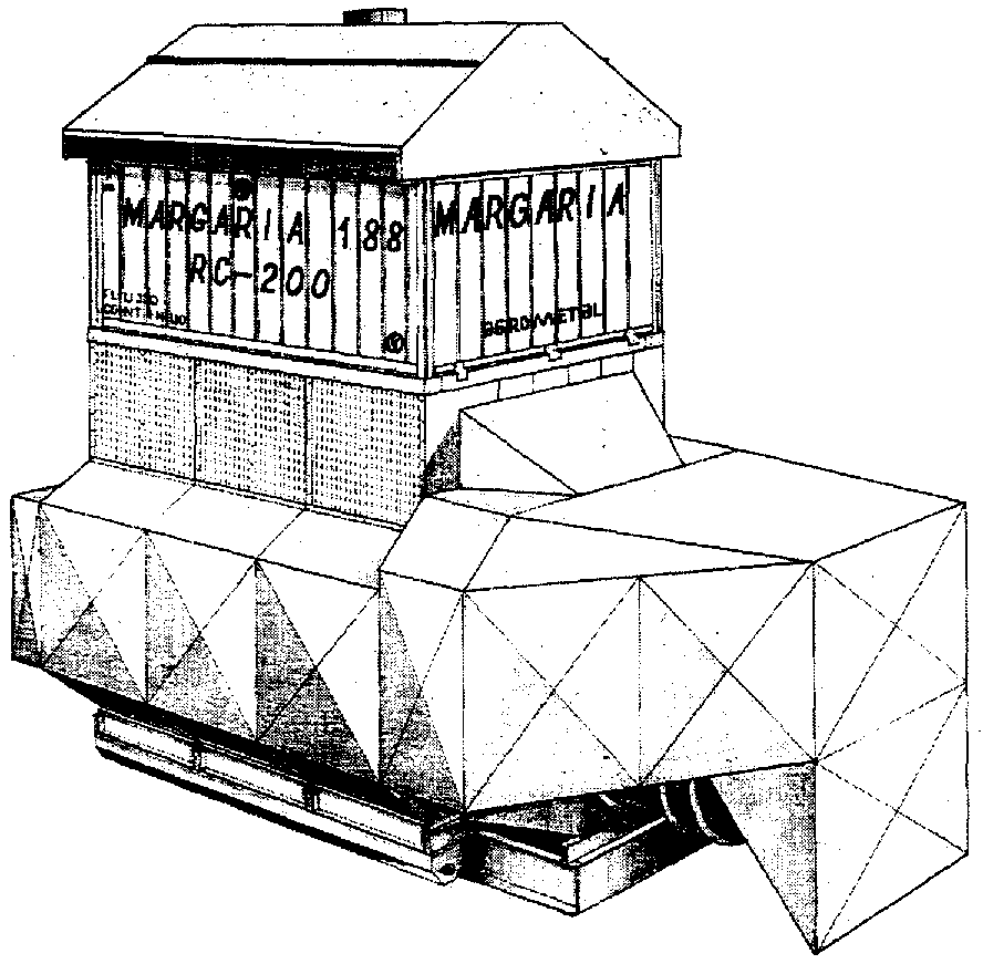 En ciertas secadoras sucede el siguiente problema: el aire exterior, cuando se encuentra con los gases muy calientes de la combustión, no tiene suficiente tiempo ni espacio para mezclarse uniformemente con dichos gases, de manera que al penetrar en la masa de granos, esa mezcla tendrá diferentes temperaturas en distintos lugares, lo cual, por supuesto, no origina un secado parejo. Esta situación puede mejorarse instalando un cámara mayor de homogeneización que a su vez puede servir para conducir el aire caliente hacia la parte superior, como se aconseja. Esta solución se ha aplicado a una secadora argentina, como se observa en las Figuras 38 y 39.