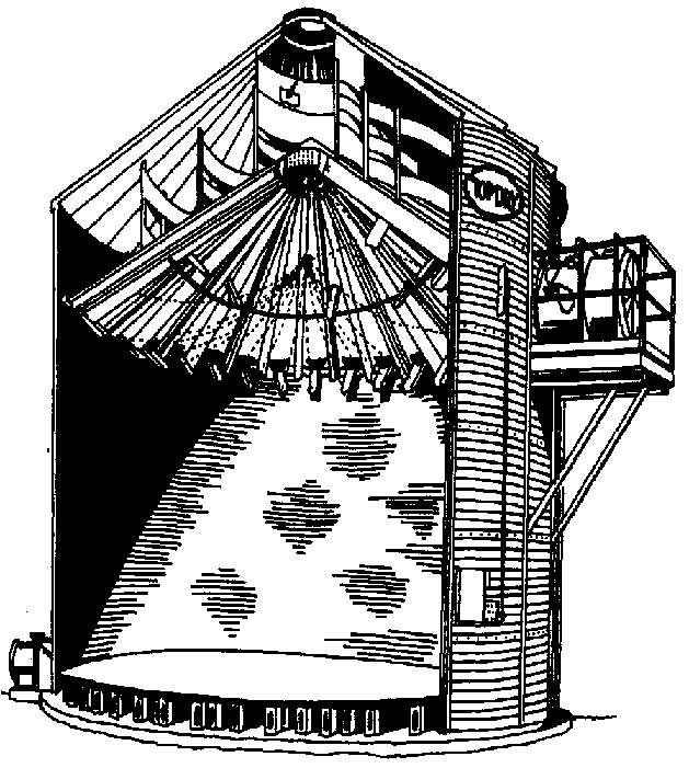 12.5 Son preferibles para esta tarea los silos de fondo plano perforado, porque la aireación es así mucho más efectiva. En Estados Unidos estas secadoras en silos "in-bin dryers" son muy comunes entre los agricultores.